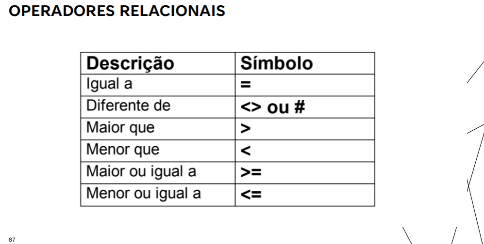 Conteúdo: Operadores lógicos, aritméticos e relacionais. Operações lógicas.