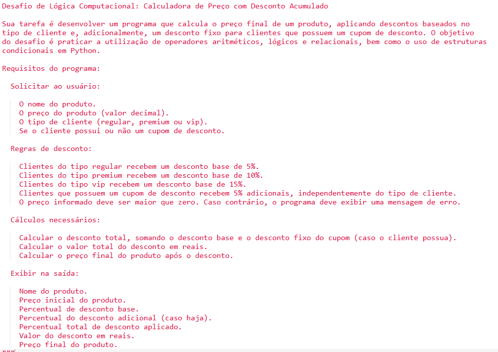 Descrição professor: Exercício para aprimorar os conhecimentos e desafiar a lógica.