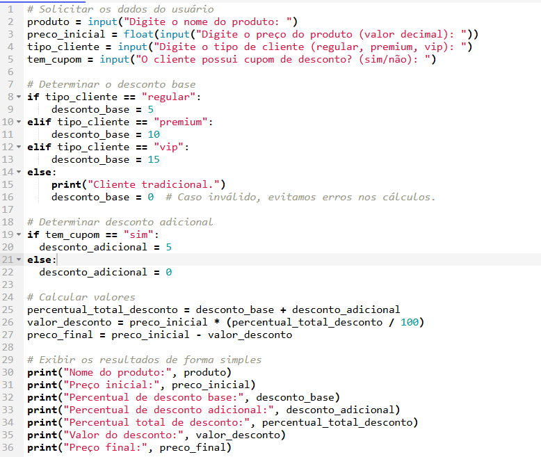 Descrição professor: Exercícios resolvidos sobre todo conteúdo descrito e aprendido até abril de 2025. Este exercício contempla, inclusive, fluxograma e pensamento lógico.