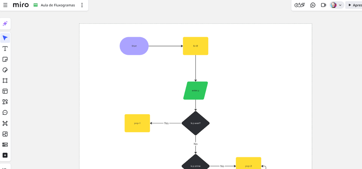 Descrição professor: Esta ferramenta é criada para colaboração e ajuda muitos times a evoluir e organizar tecnicamente os projetos. Usaremos o Miro para estruturar nossos Fluxogramas e realizar atividades antes de codificarmos. Acesse, crie uma conta e divirta-se.