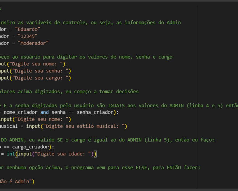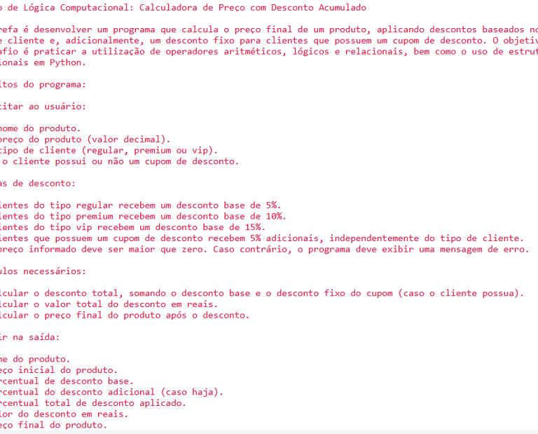 Conteúdo: Algoritmos, pensamento computacional, variáveis, estruturas de decisão, operadores lógicos, aritméticos e relacionais.